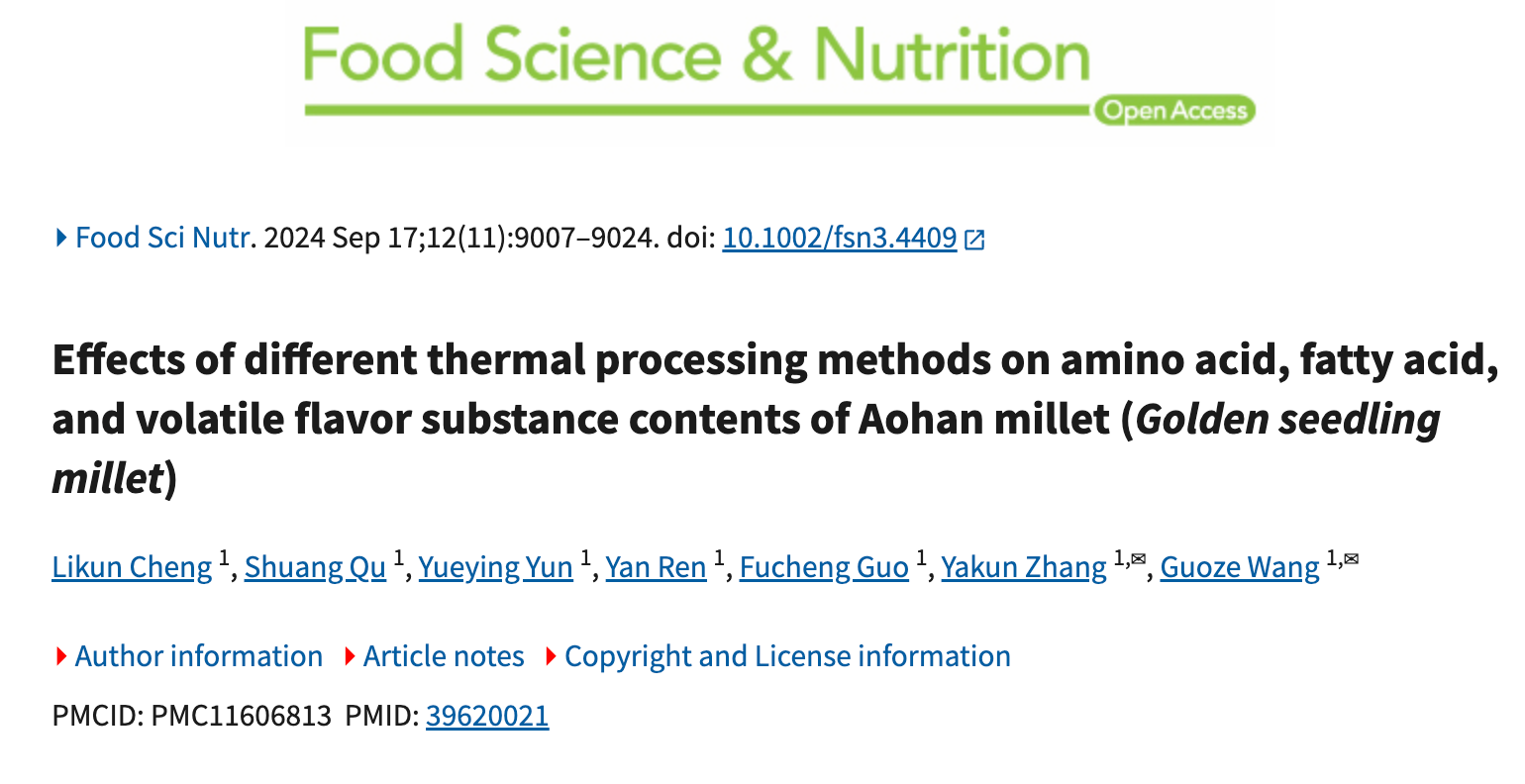农产品加工与贮藏团队在Food Science & Nutrition发表研究成果