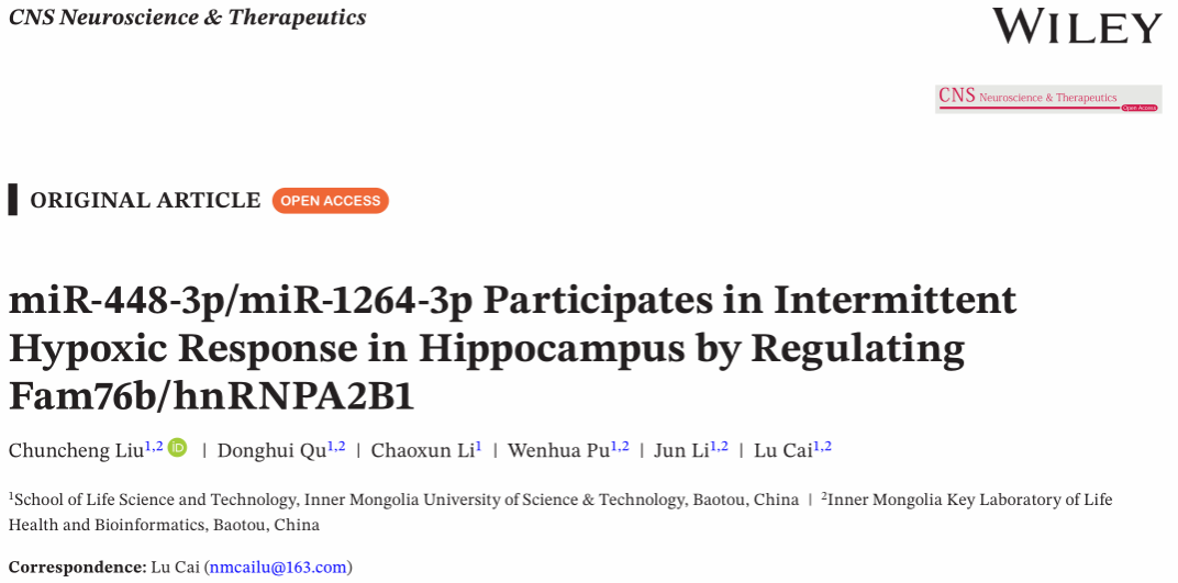 蔡禄教授团队在CNS Neuroscience & Therapeutics期刊发表研究成果