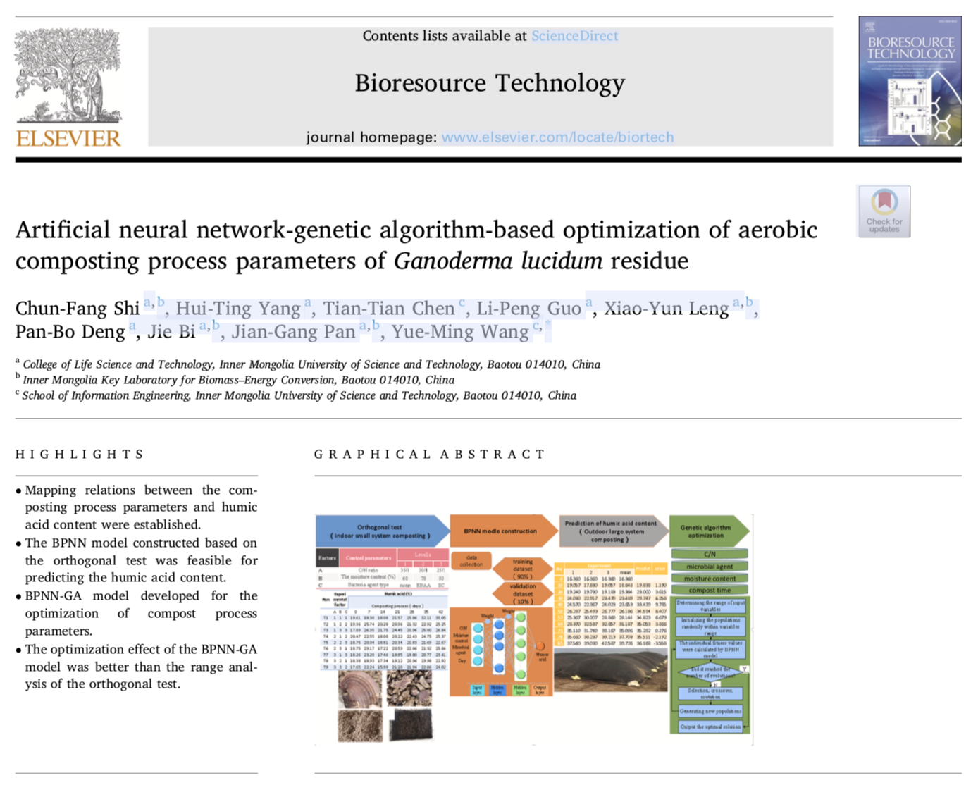 石春芳教授团队在Bioresource Technology发表研究成果