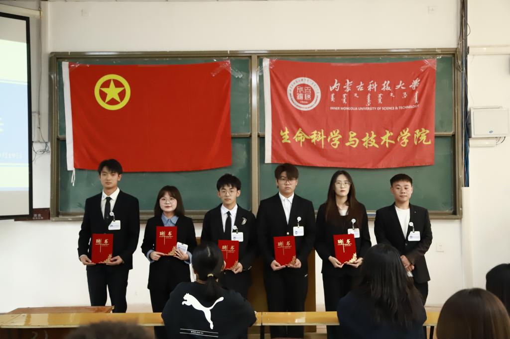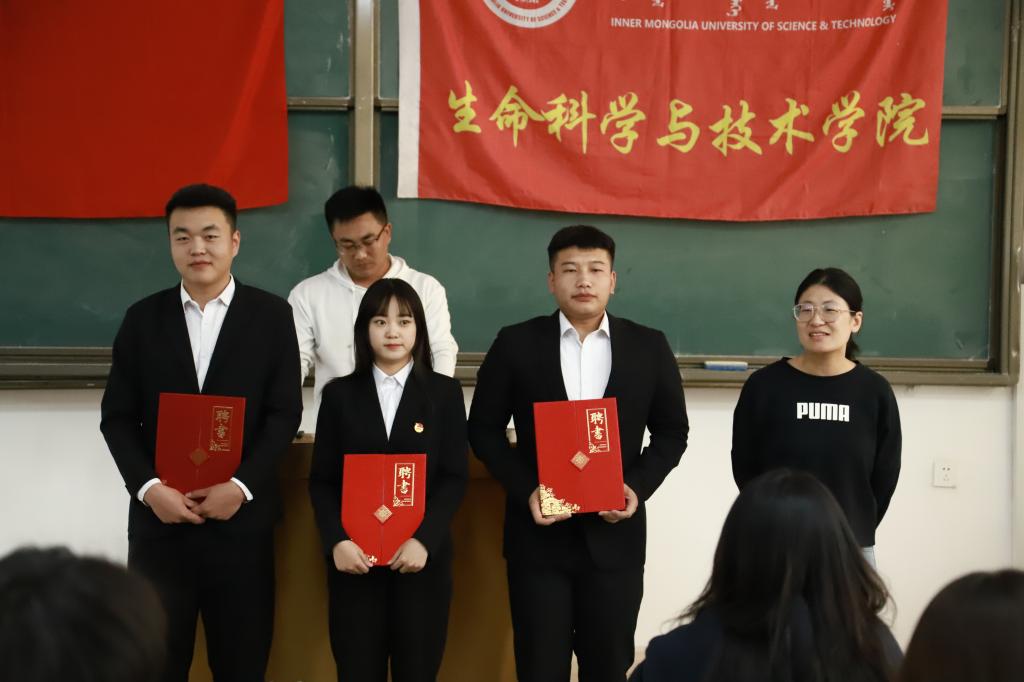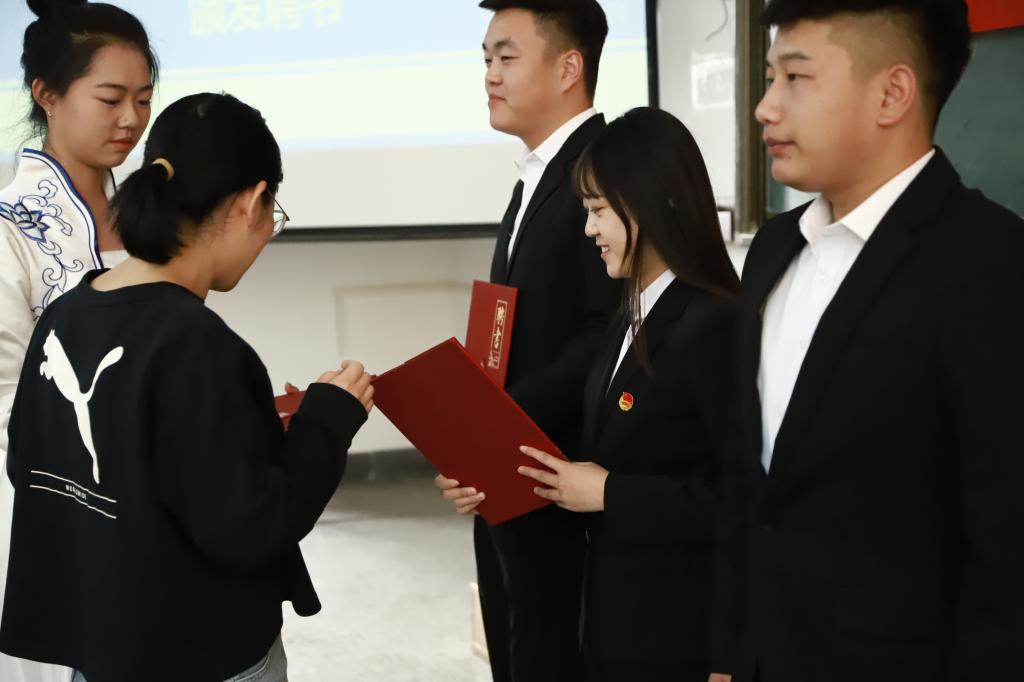 大会第五项:聘任2023届团学组织各部门部长。由主席团成员许双丁同学宣读2023届团学组织各部门部长名单,主席团成员为其所分管部门部长颁发聘书和工作证。