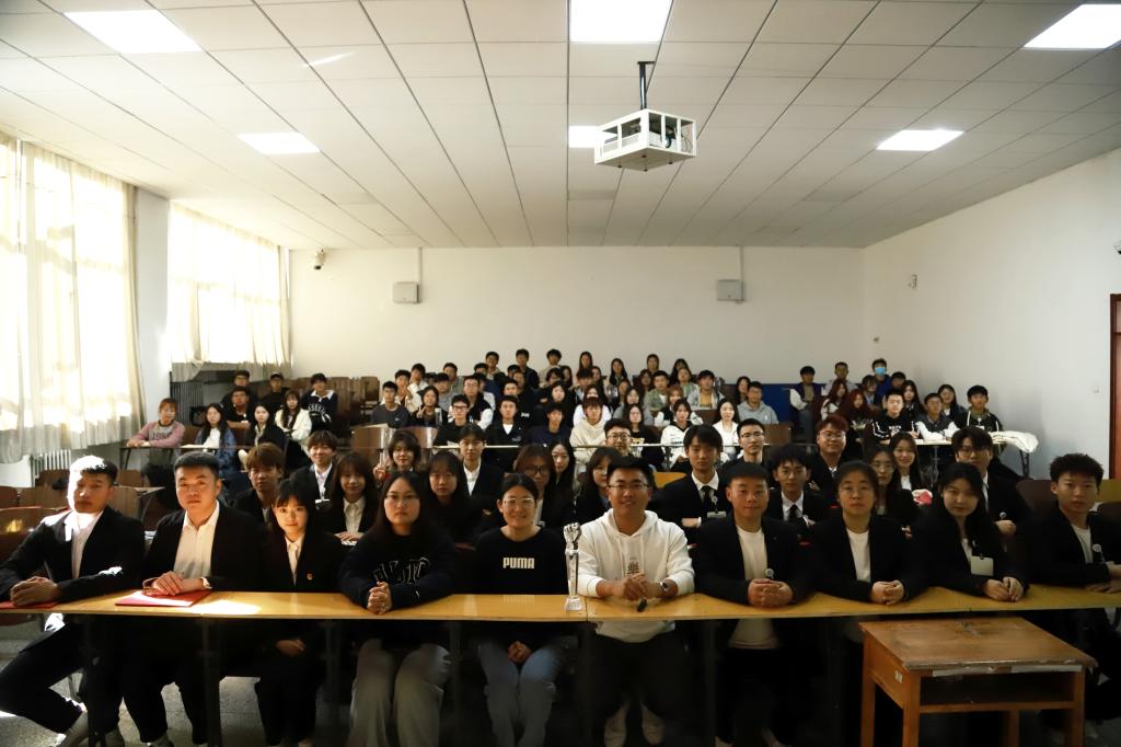 大会第三项:聘任2023届团学组织主席团。(1)乌日根老师宣读2023届团学组织主席团成员名单:主席团主席许双丁同学、团总支副书记孙悦同学、副主席昝梓萌同学、副主席杜志豪同学;(2)张超老师为2023届团学组织主席团成员颁发聘书和工作证,并对2023届团学组织未来一年的工作做出简要期许;(3)2023届主席团成员依次介绍了自己及分管部门,并对任期内所承担工作做出表态与承诺。