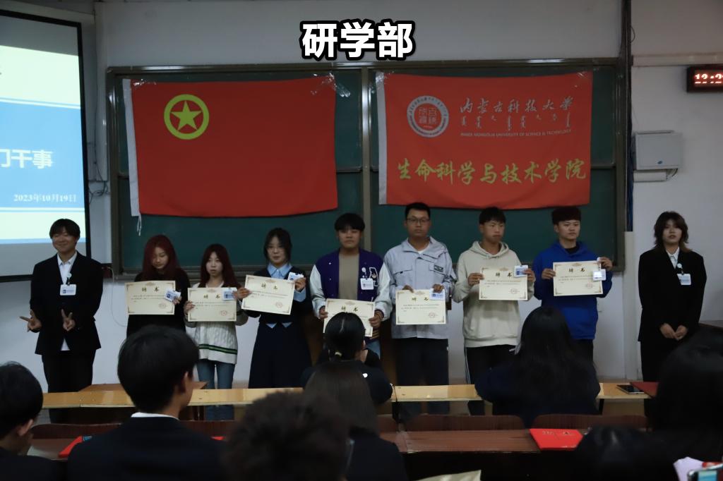 大会第六项:聘任2023届团学组织各部门干事。以部门为单位,部长携本部门成员依次上台,由部长为本部门干事颁发聘书和工作证,介绍本部门主要职责和部门成员的基本情况,并对任期内所承担工作做出表态与承诺。