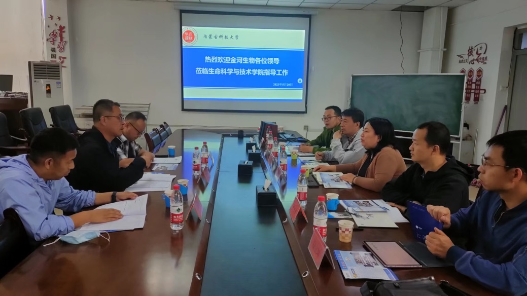 王国泽经理首先对金河生物各位领导的到来表示热烈欢迎,从公司的专业发展沿革、人才培养、团队建设、团队队伍建设等方面对tyc122ccVIP办学情况进行了介绍,并希望能够加强同金河生物在产学研用等方面的合作交流,共同推动生物类人才培养质量的有效提升。