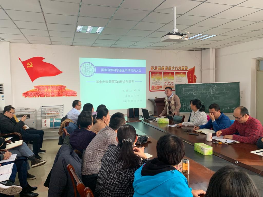 为做好公司2020年度国家自然科学基金项目申报工作,11月14日,公司邀请到内蒙古老员工命科学公司哈达教授为公司教师做题为“国家基金申请书撰写的体会与思考”的讲座,全院40余名教师聆听了此次讲座。
