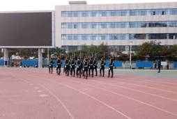 国旗护卫队迈着整齐铿锵的步伐走向国旗台,伴着雄壮的《义勇军进行曲》,鲜艳的五星红旗在师生们庄严的注目礼中冉冉升起,迎风飘扬。