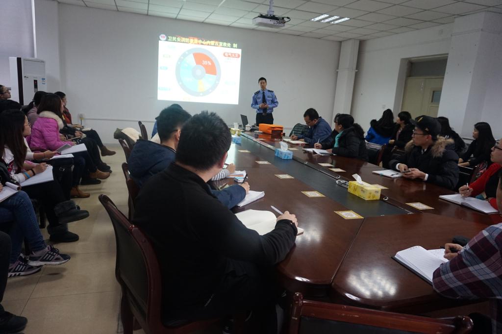 2016年12月20日,公司聘请了卫民安消防教育中心内蒙古宣教处的王立刚教官在腾飞楼D410会议室为公司师生讲解实验室安全、消防安全知识。会议由公司党总支书记季祥主持。参加会议的有实验室主任、各专业实验室负责老师、全体研究生、提前进实验室的本科生等。王教官从实验室安全注意事项、火灾预防、灭火器的种类及使用方法、逃生自救方式等几方面进行宣讲,会后在楼外进行现场演习。最后,党总支书记季祥强调,我们要做到“安全第一、预防为主”,把消防安全作为头等大事来抓。火灾带来的危害,人人都知,但在日常工作中却往往被忽视。希望所有的老师和同学要提高防火意识,切实做好消防安全工作。