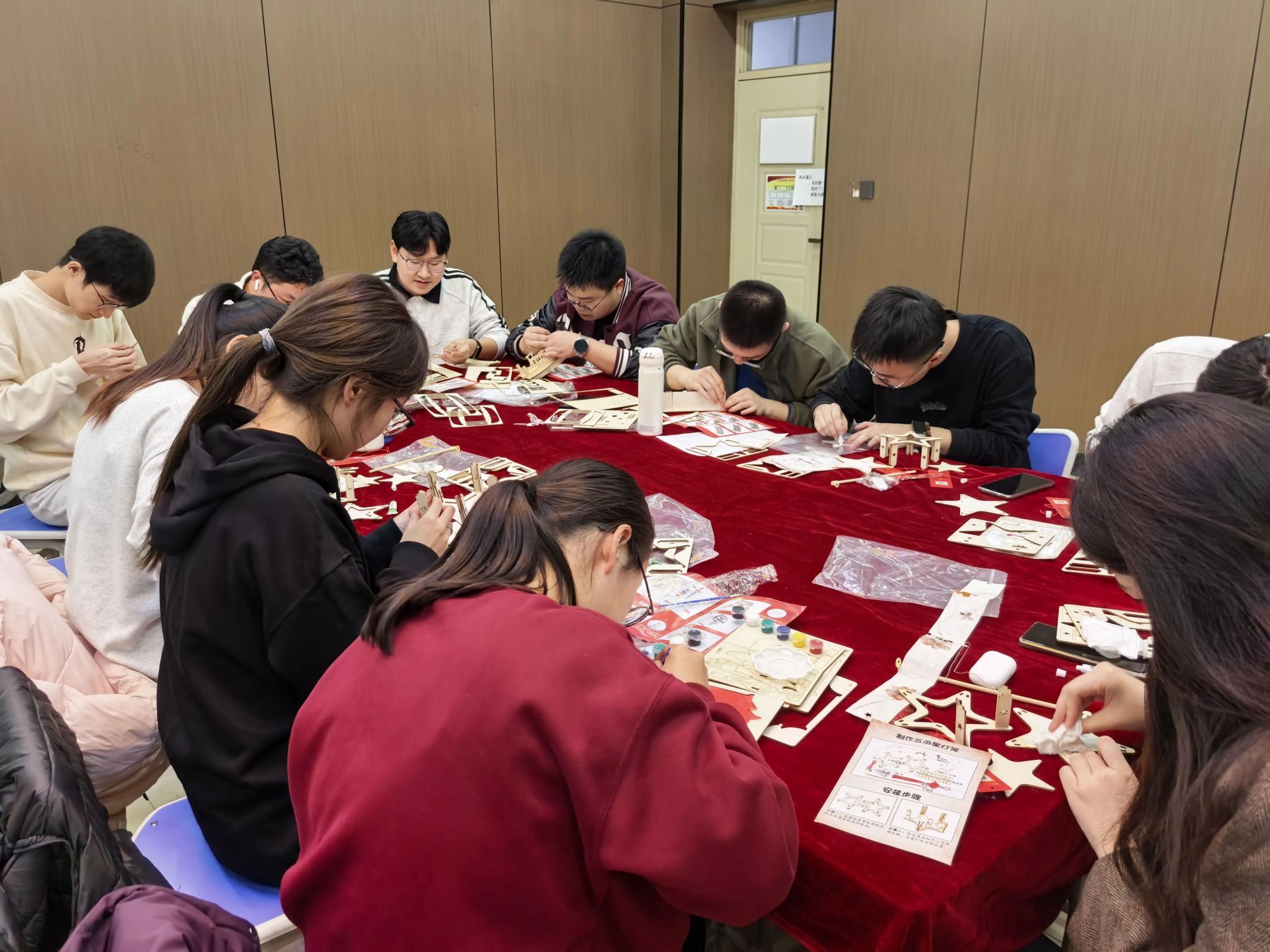 在随后的手工拼图环节中,大家有序协作,细致拼接。员工党员们沉浸其中,有的专注研究图纸,有的默契配合组装……现场气氛热烈而有序,一件件红色主题手工作品在大家的共同努力下逐渐成型。