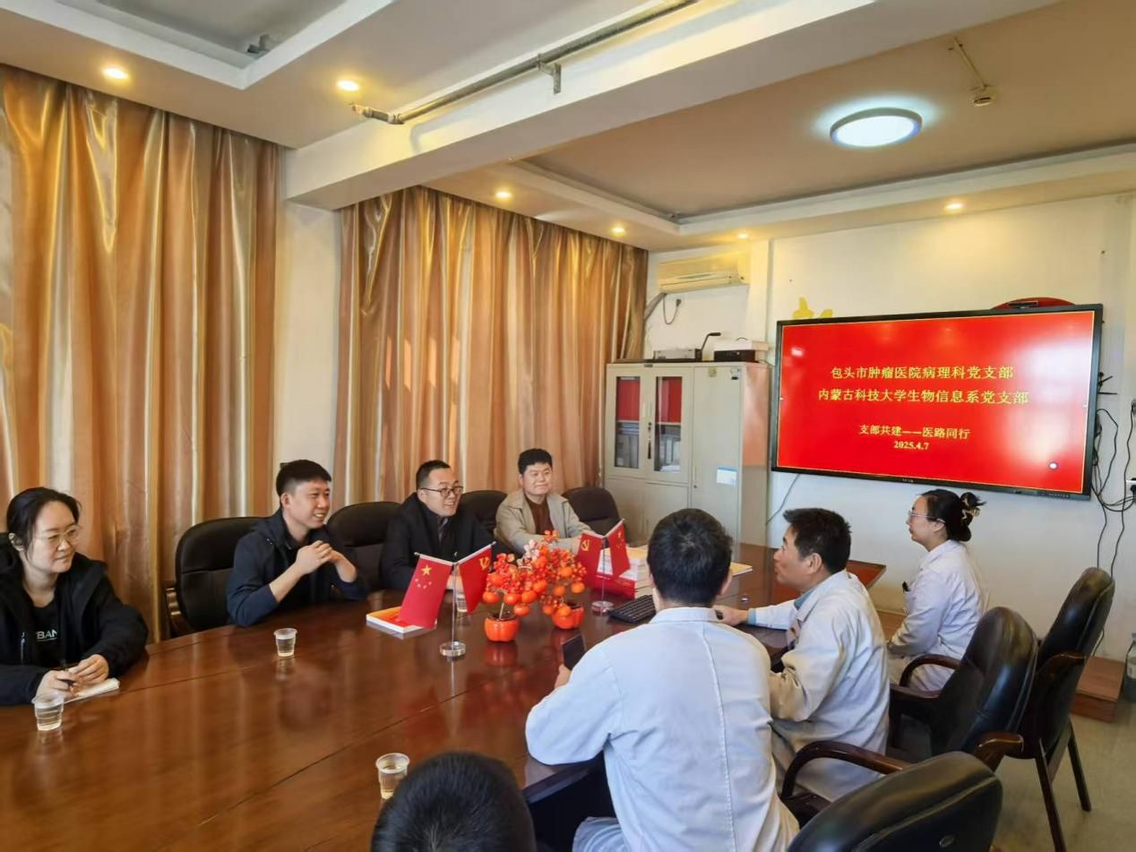 为深入贯彻习近平总书记关于新时代党的建设和科技创新的重要指示精神,近日,tyc122ccVIP生物信息学系教工党支部与包头市肿瘤医院病理科党支部开展了以“数智红盾——医路同行”为主题的支部共建活动,旨在加强基层党组织建设,推动学科交叉融合,促进科技与医疗协同发展。