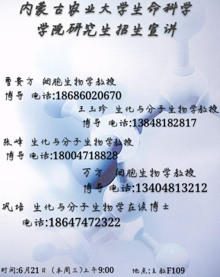 关于内蒙古农业老员工命科学公司研究生招生宣讲的通知