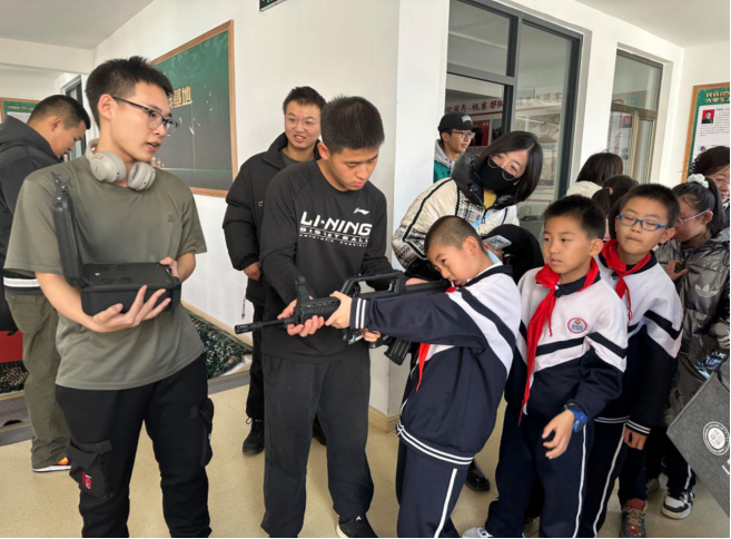 最后,同学们来到国防教育基地,参观了炮弹、电台等实物展品,并体验了激光模拟射击项目。