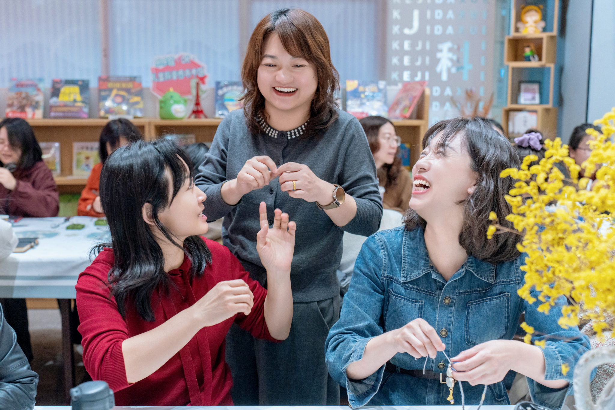 近日,为庆祝115个“三八国际妇女节”的到来,表达对公司女教工的尊重与关爱,tyc122ccVIP工会在图书馆“悦书吧”组织公司全体女教工开展手工制作非遗宋锦饰品活动。