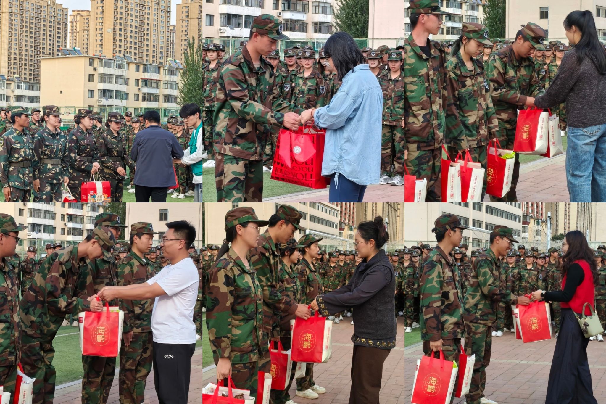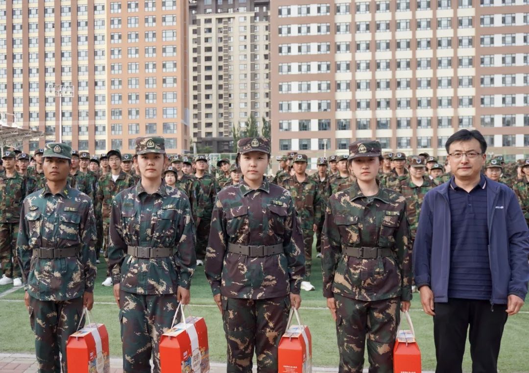 随后,王晓东副书记带领学工办老师乌日根老师、张超老师,贾镇宁老师、陈明真老师以及班主任代表王佩君老师,军训教导员冯宁宁老师一同来到军训队伍中,向辛勤付出的教官们表达了诚挚的感谢,并赠送了精心准备的月饼礼盒。这份礼物不仅寄托了公司对教官们的认可与期望,更传递了公司对新生们的深切关怀。教官们接过礼盒,脸上洋溢着欣慰的笑容,训练场上充满了温情与敬意。同学们也深受鼓舞,他们以更加挺拔的军姿和整齐划一的动作回应着公司的关爱。
